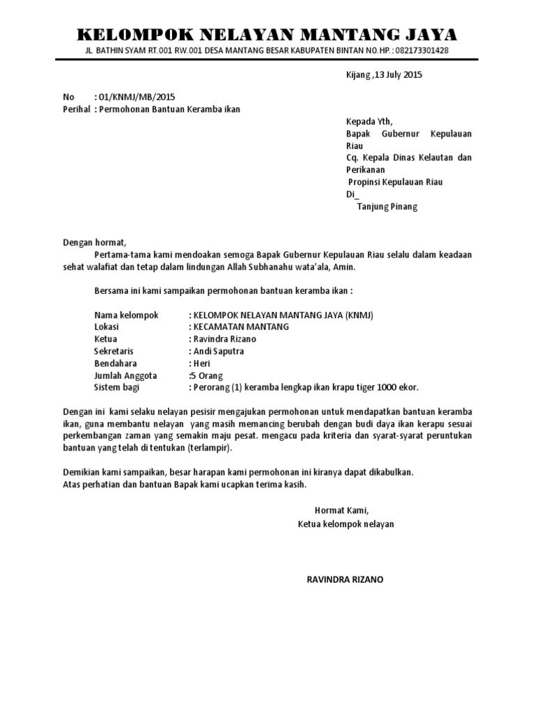 Contoh Proposal Bantuan Alat Tangkap Ikan - Berbagi Contoh Proposal