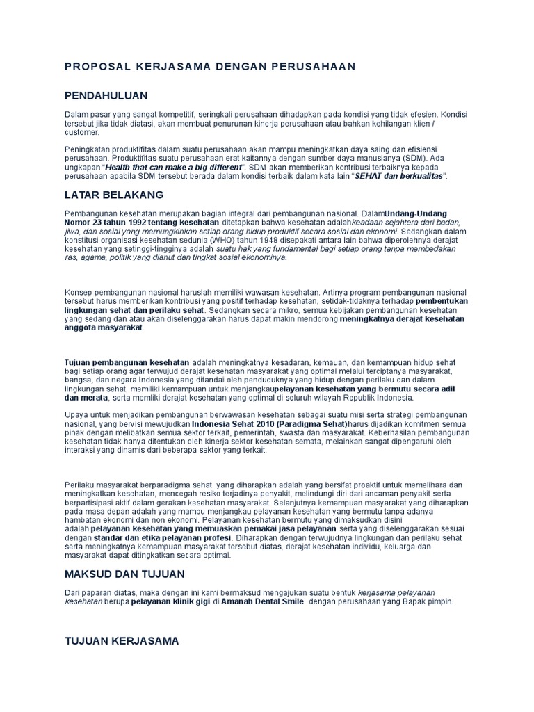 Contoh Proposal Kerjasama Klinik Dengan Perusahaan