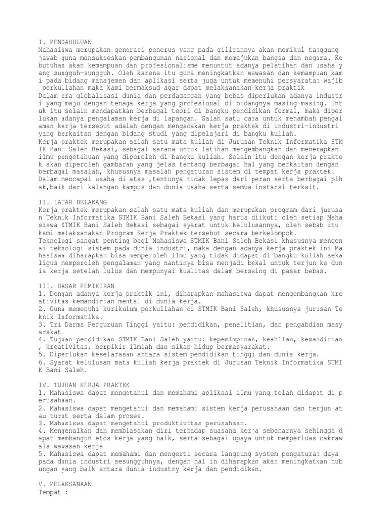 PANDUAN PEMBUATAN PROPOSAL PRAKTEK KERJA LAPANGAN (PKL) Program Strata Satu (S.1) Badan Penjamin Mutu - PDF Download Gratis