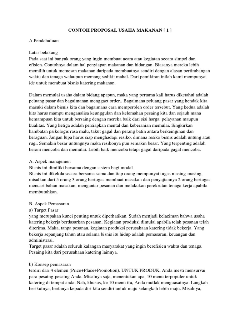 Contoh Proposal Usaha Makanan - CerdasPedia