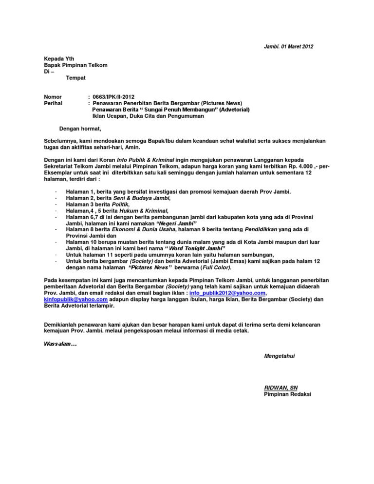 Contoh Surat Penawaran Pemasangan Iklan Di Koran - Dapatkan Contoh