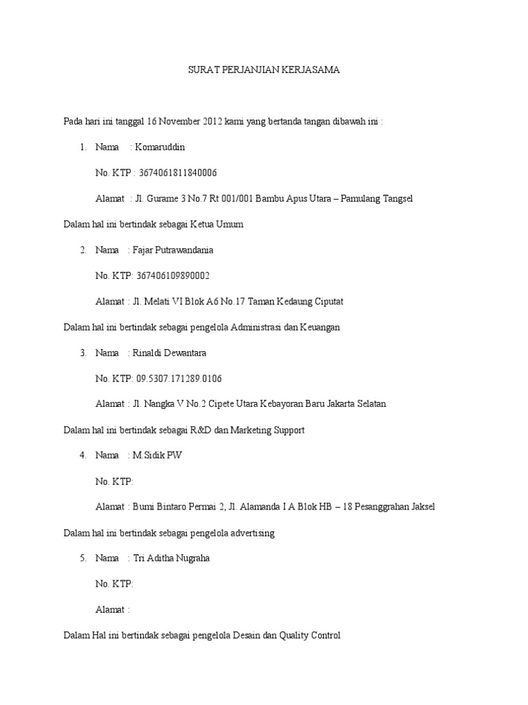Contoh Surat Perjanjian Kerjasama Usaha