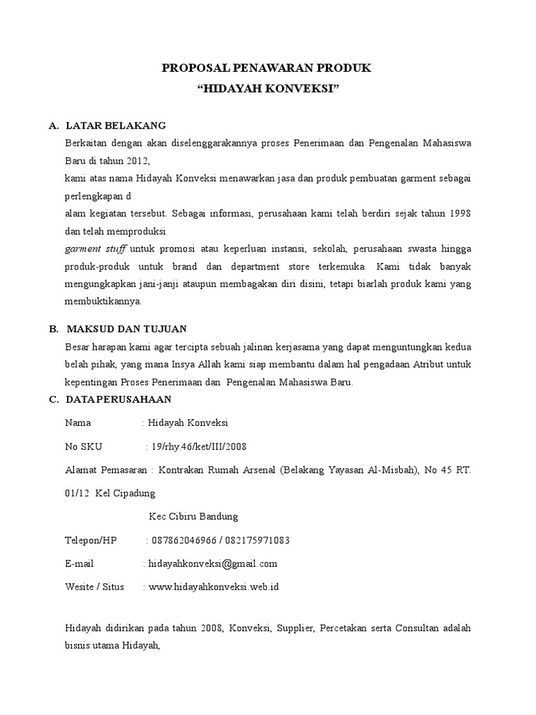 DOC) proposal penawaran produk | Yenny Oktafitriana Arbi - Academia.edu