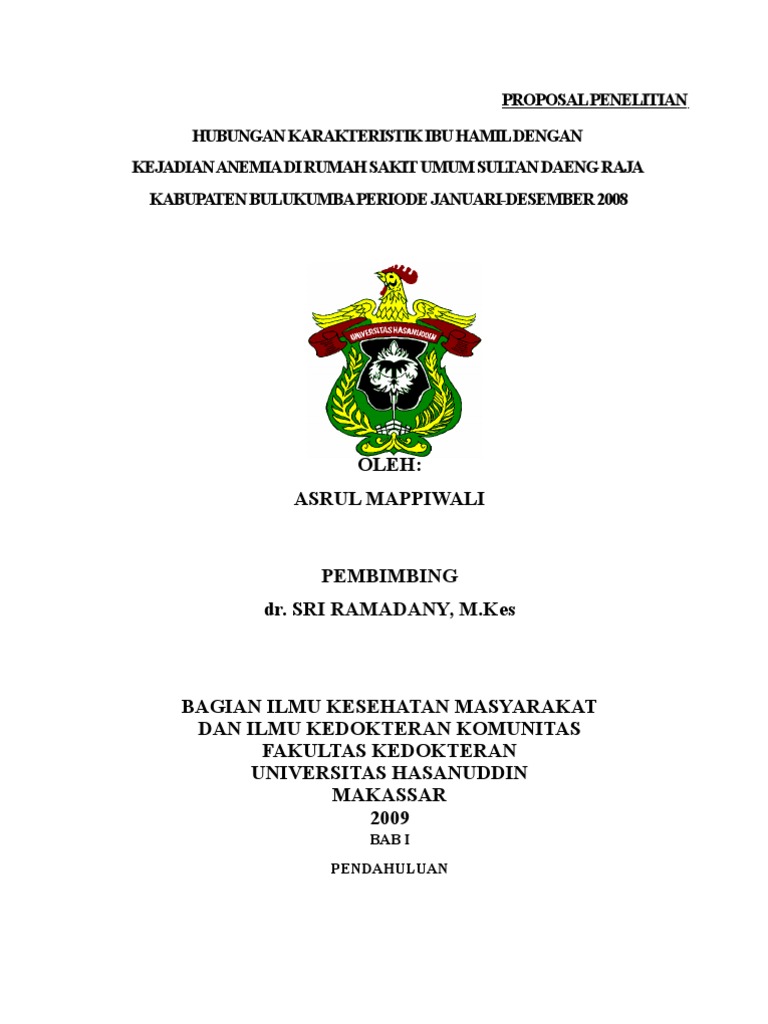 Proposal Penelitian Hubungan Karakteristik Ibu Hamil dengan Kejadian Anemia di RS Bulukumba Januari-Desember 2008