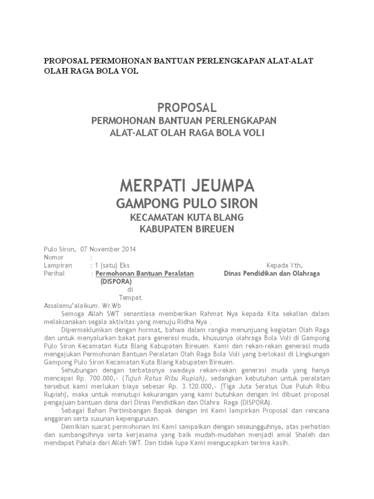 Proposal Bantuan Alat Olahraga Doc Download | Peatix
