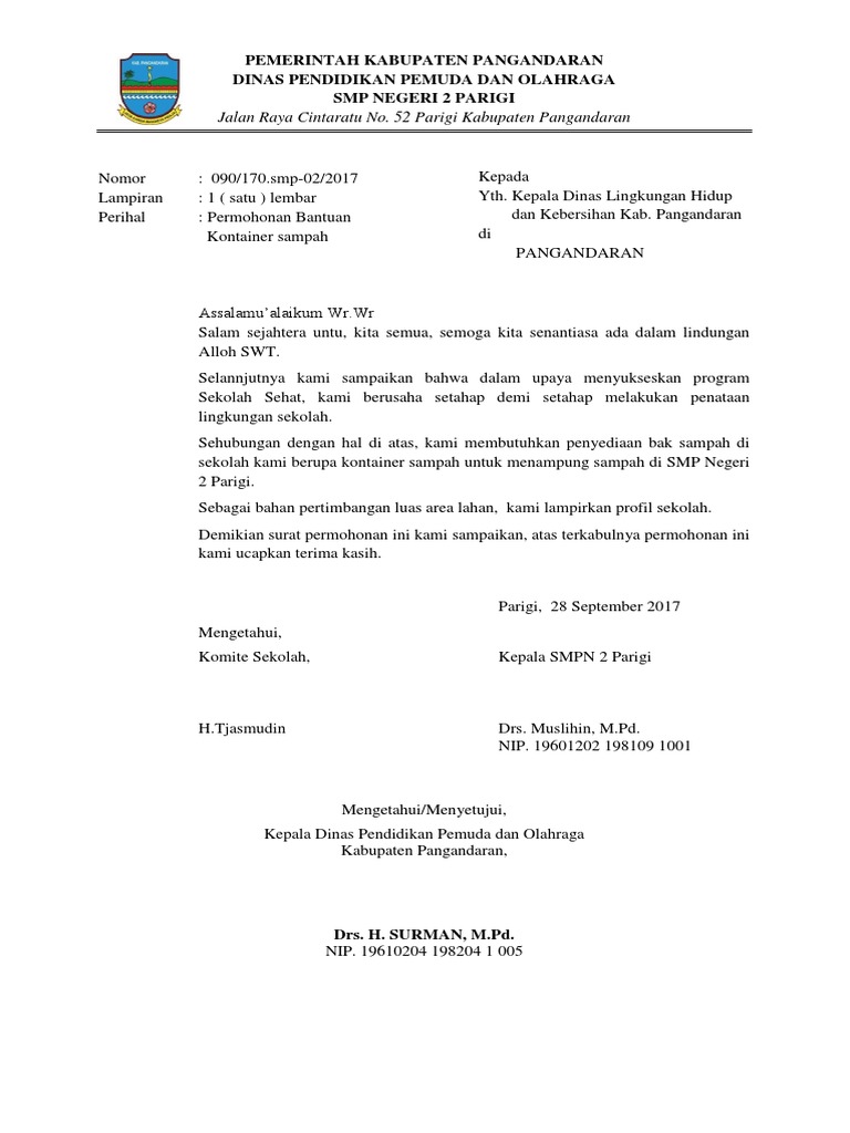 Contoh Surat Permohonan Bantuan Tempat Sampah - Kumpulan Surat Penting