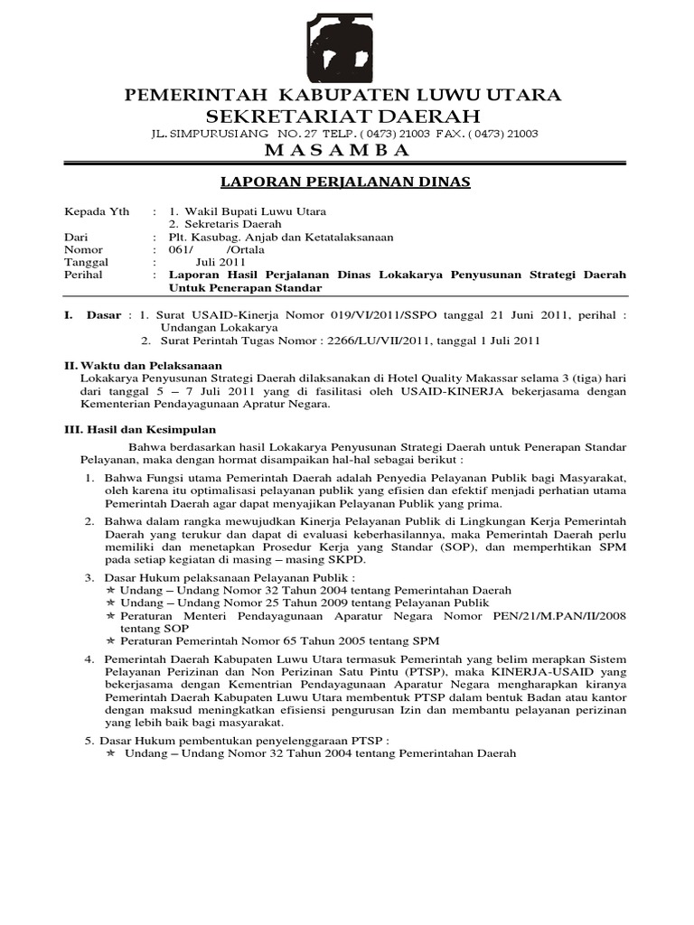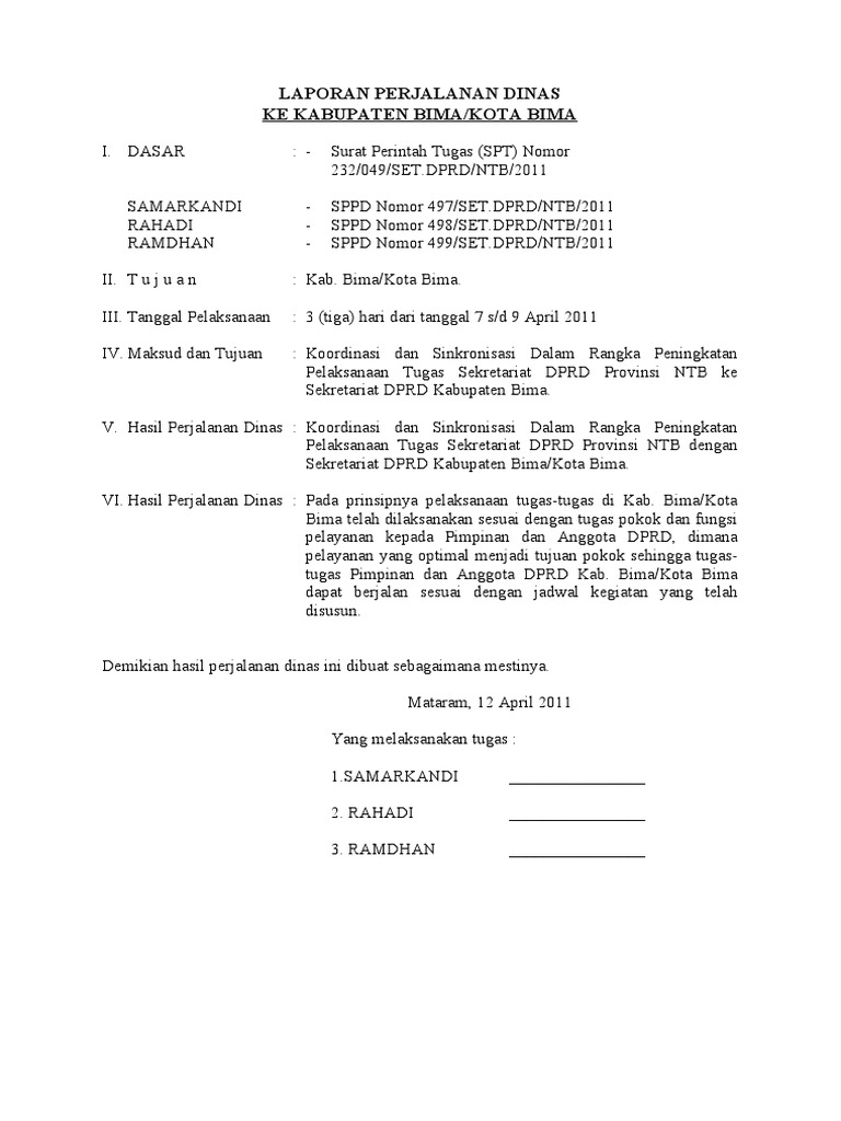 Contoh Laporan Perjalanan Dinas Dalam Daerah Pns - Kumpulan Contoh Laporan
