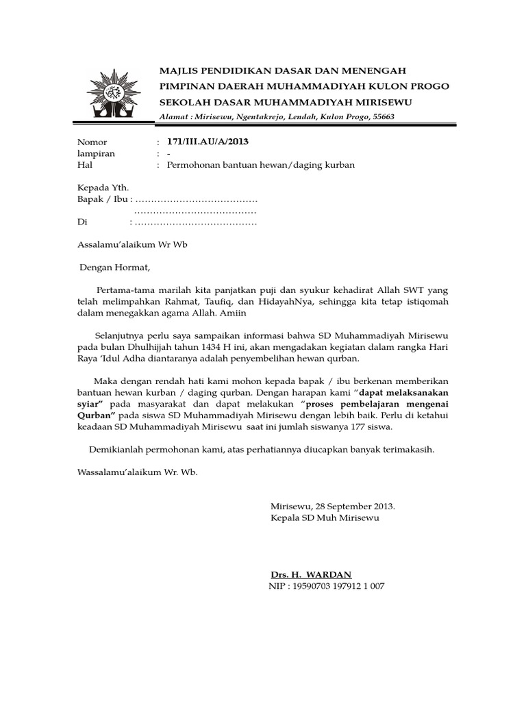 Contoh Surat Permohonan Hewan Qurban - Download Kumpulan Gambar