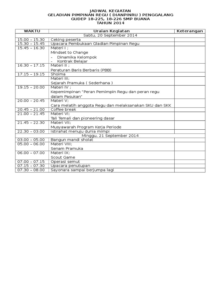 DOC) Proposal Perkemahan Pelantikan Pramuka Penggalang | Safi’i Sungai-Balum - Academia.edu