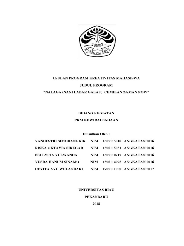 Contoh Cover Proposal Pkm Kewirausahaan - Kumpulan Contoh Makalah Doc Lengkap