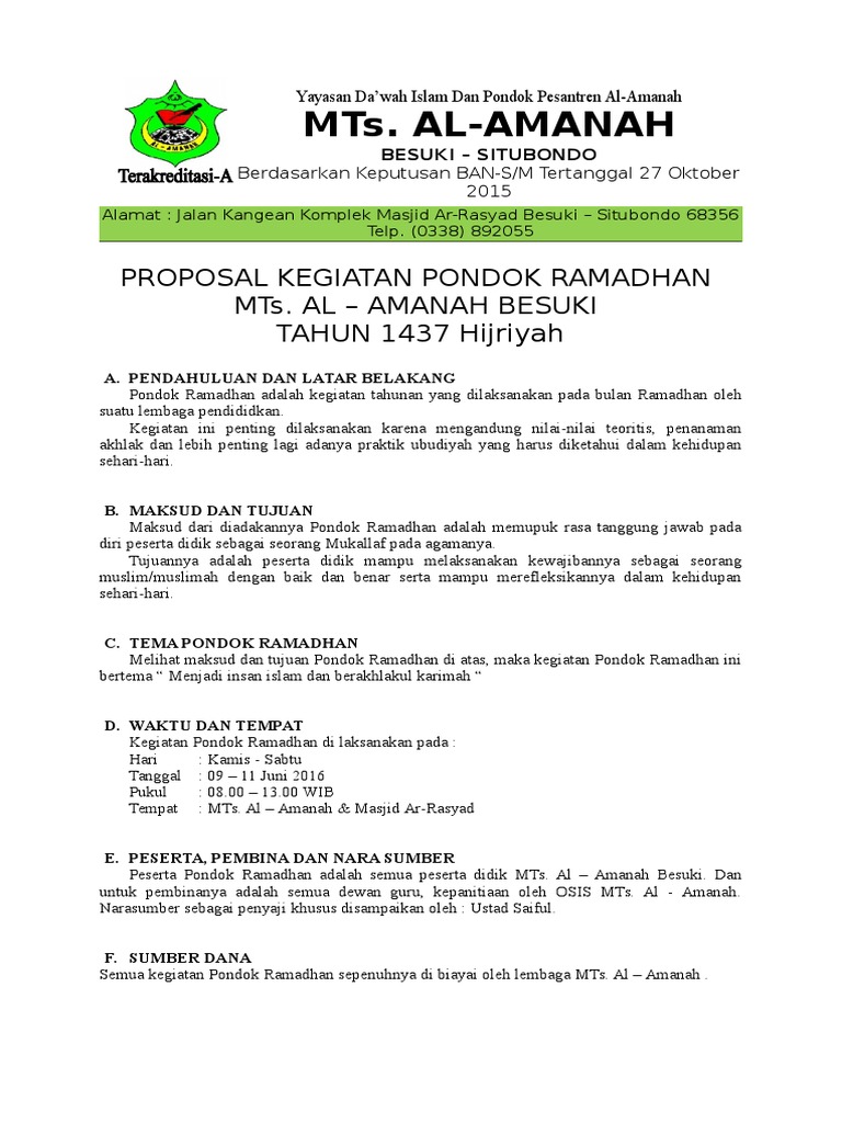 DOC) Kegiatan Pondok Ramadhan Musholla Al Ikhlas Th 2015 Final Proposal | Fahad Akbar - Academia.edu