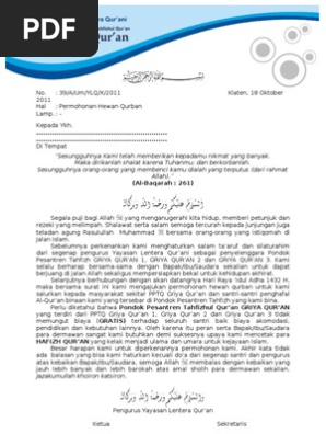 Contoh Surat Qurban Sekolah | Zona ilmu 3