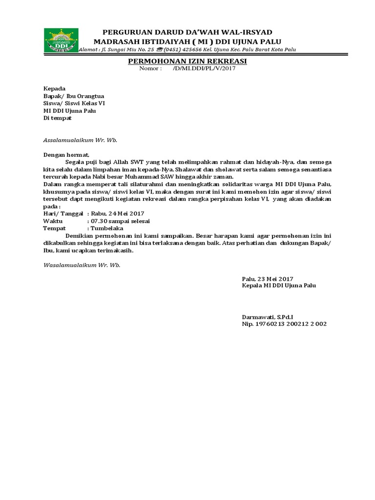 Contoh Surat Izin Rekreasi Untuk Orang Tua - Contoh Seputar Surat