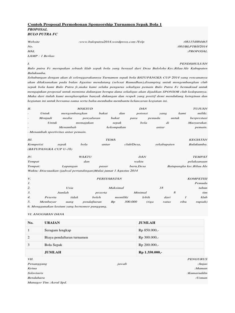 Contoh Proposal Sponsor Klub Sepak Bola - Berbagi Contoh Proposal