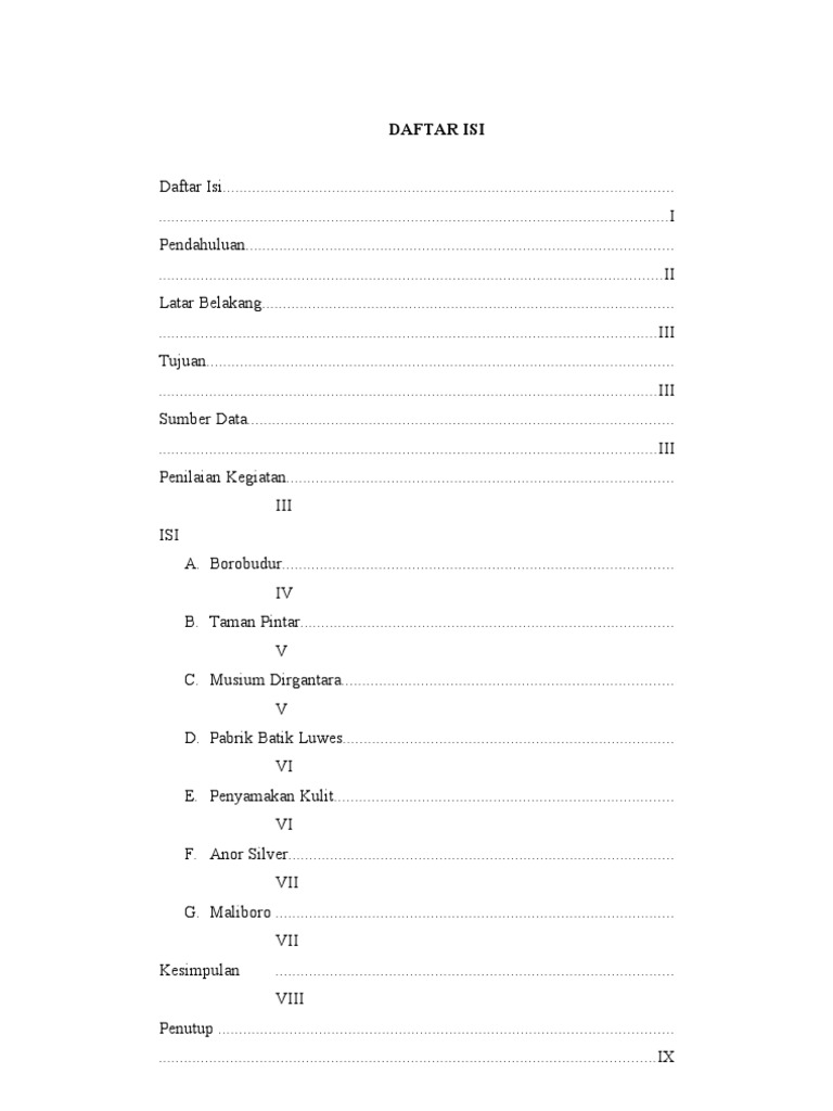 Contoh Daftar Isi Laporan Study Tour | Materi Pelajaran 2