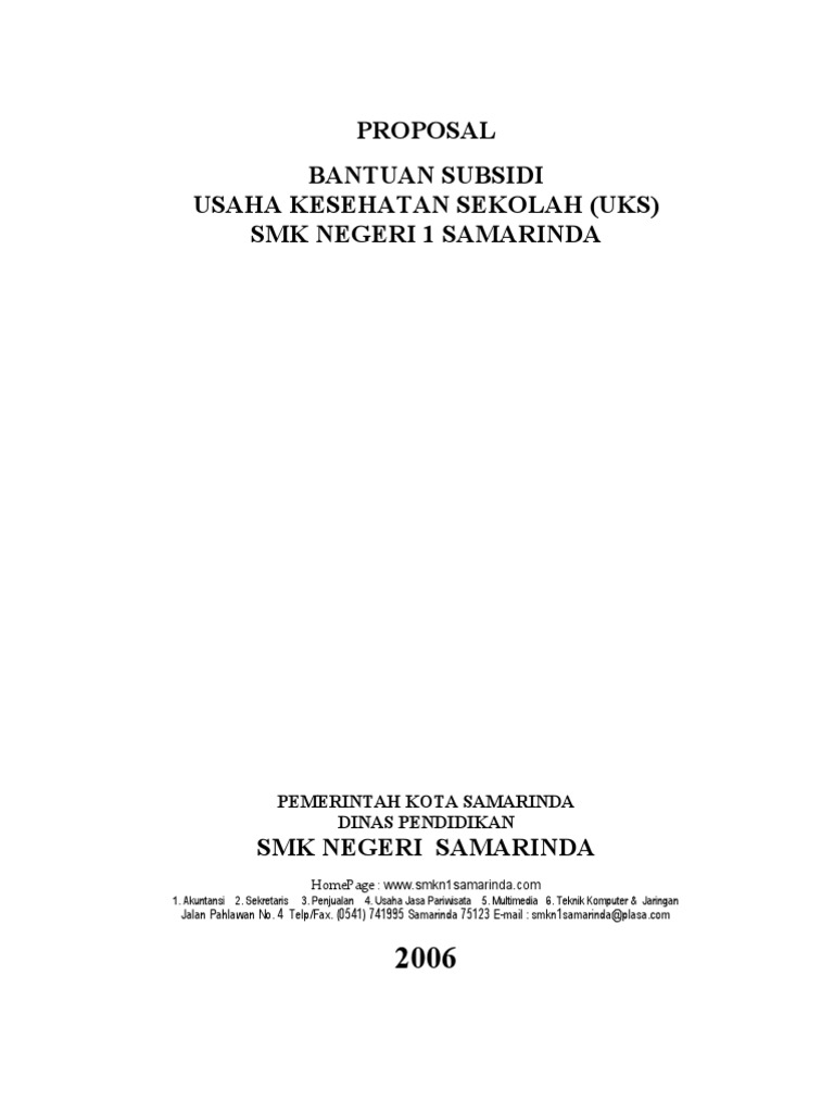 PROPOSAL BANTUAN SUBSIDI USAHA KESEHATAN SEKOLAH (UKS) SMK NEGERI 1 SAMARINDA - PDF Free Download