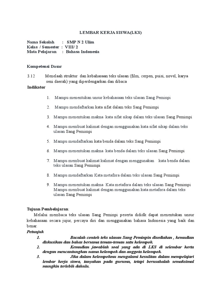 Struktur Teks Ulasan Sang Pemimpi | Mikirbae.com