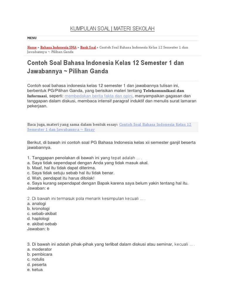 Contoh Soal Bahasa Indonesia Kelas 12 Semester 1 Dan Jawabannya Essay