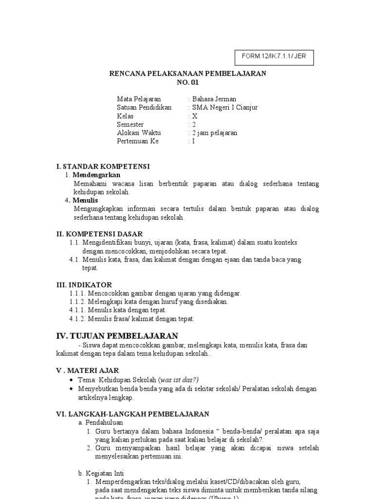 RPP Bahasa Jerman Kelas 10 SMA Kurikulum 2013 Revisi 2017 | Portal …