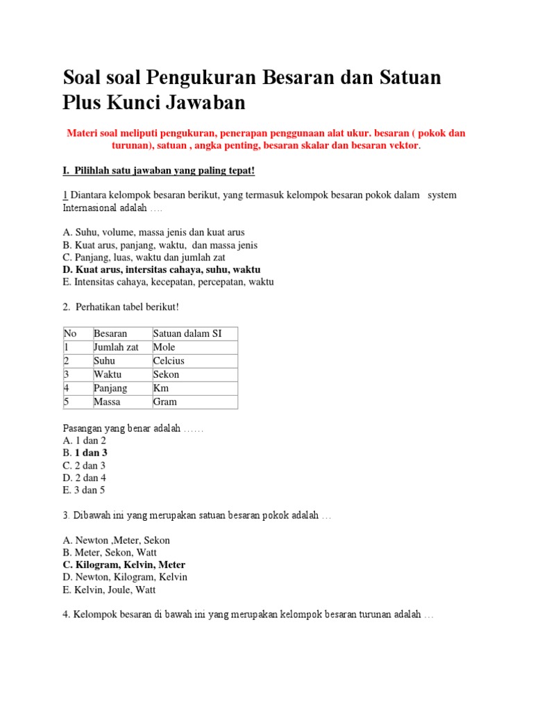 Contoh Soal Essay Besaran Dan Satuan Beserta Jawabannya - Contoh …