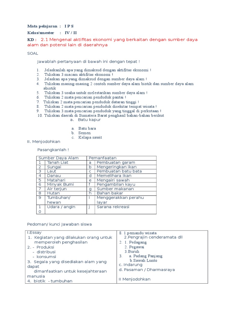 Contoh Soal Ips Kelas 4 Semester 1 - Dapatkan Contoh