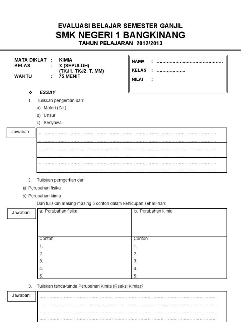 Soal Kimia Kelas 10 Semester 2 Essay | Zwpcsw.mesemezhd.info