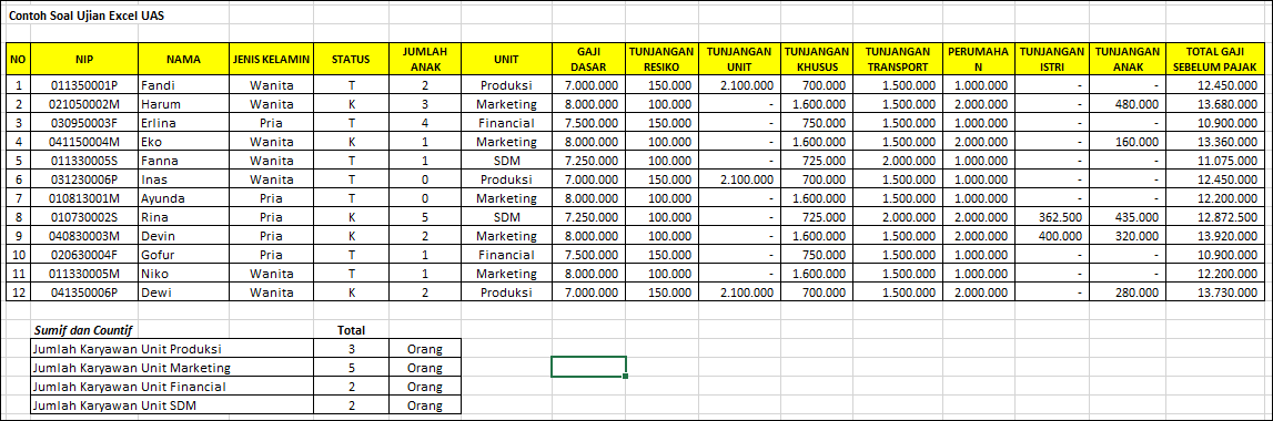 Contoh Latihan Soal Excel Untuk Ujian UAS - Belajar Excel
