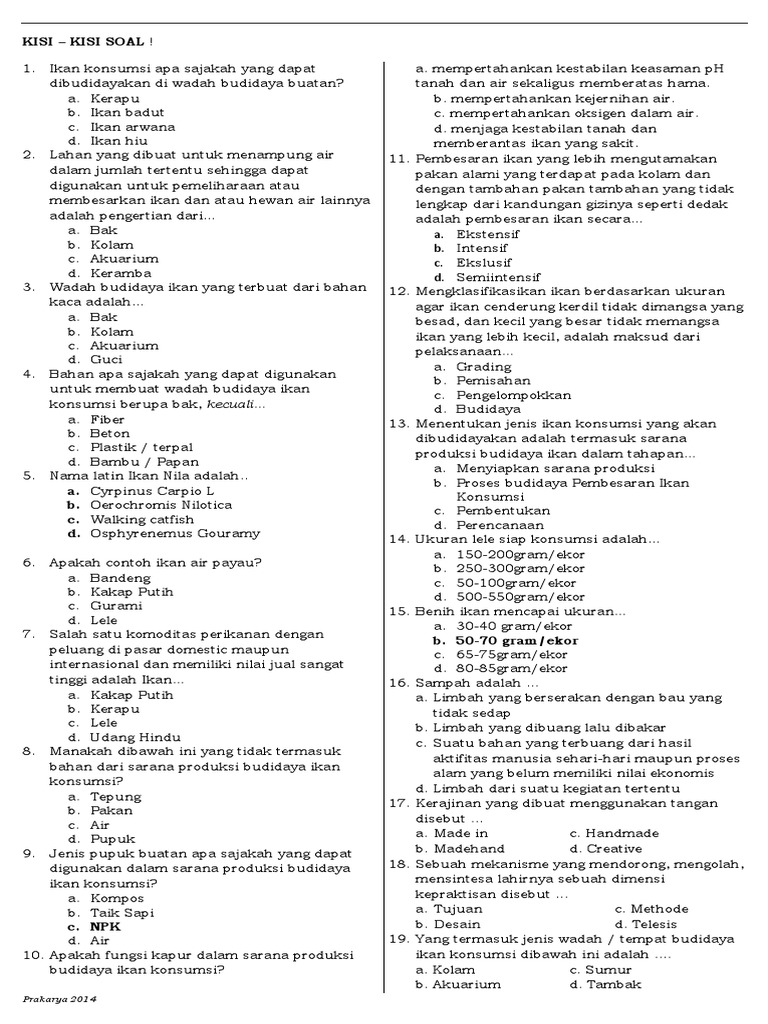 Soal Dan Kunci Jawaban Smk Perikanan - Dunia Sekolah