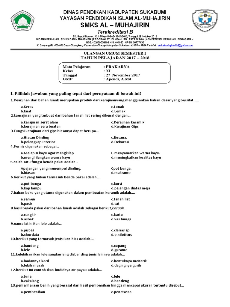 Kumpulan Soal Prakarya Dan Kewirausahaan Kelas Xi Terberu