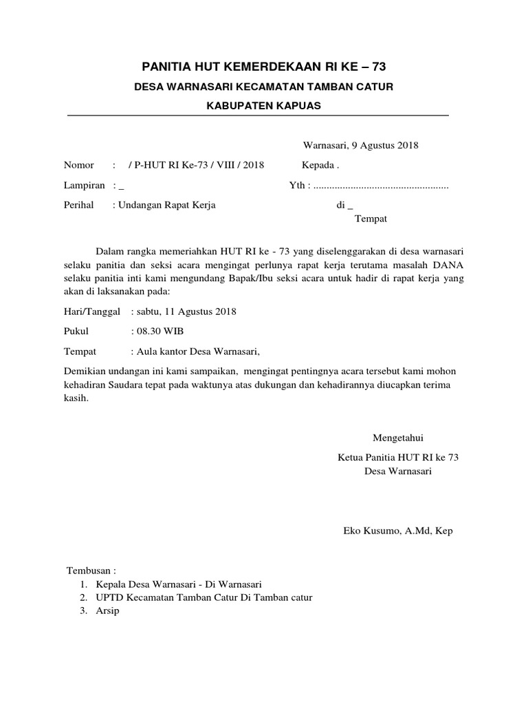 Contoh Undangan Rapat Hut Ri Ke 73 - Nusagates