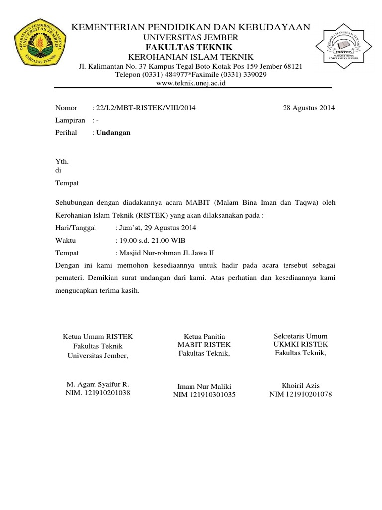 DOC) Surat Undangan Pemateri | Ihram Fajar - Academia.edu