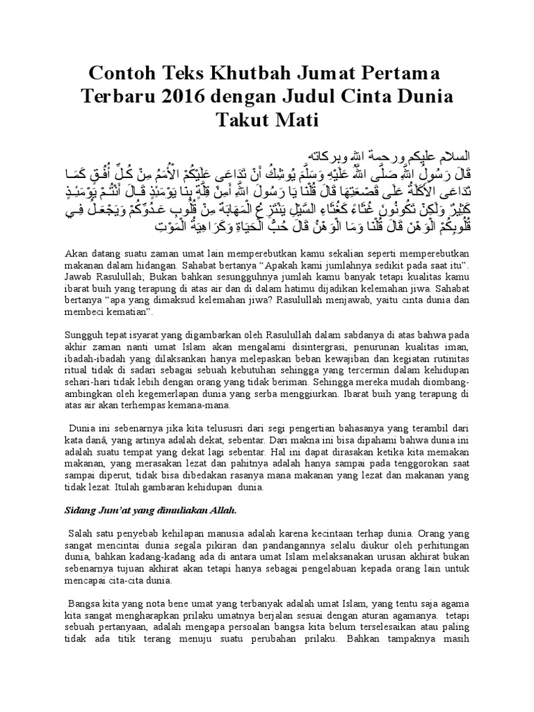 DOC) Contoh Teks Khutbah Jumat Pertama Terbaru 2017 dengan Judul Cinta Dunia Takut Mati | nety nadila - Academia.edu