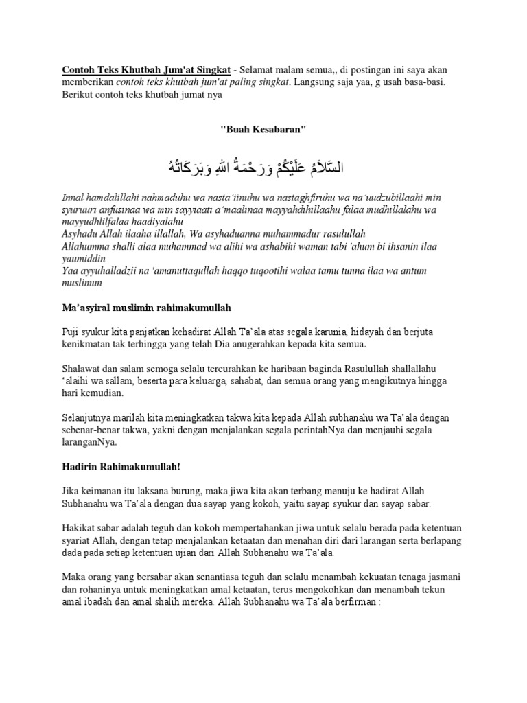 DOC) Contoh Teks Khutbah Jumat Singkat | Samodra Sam - Academia.edu