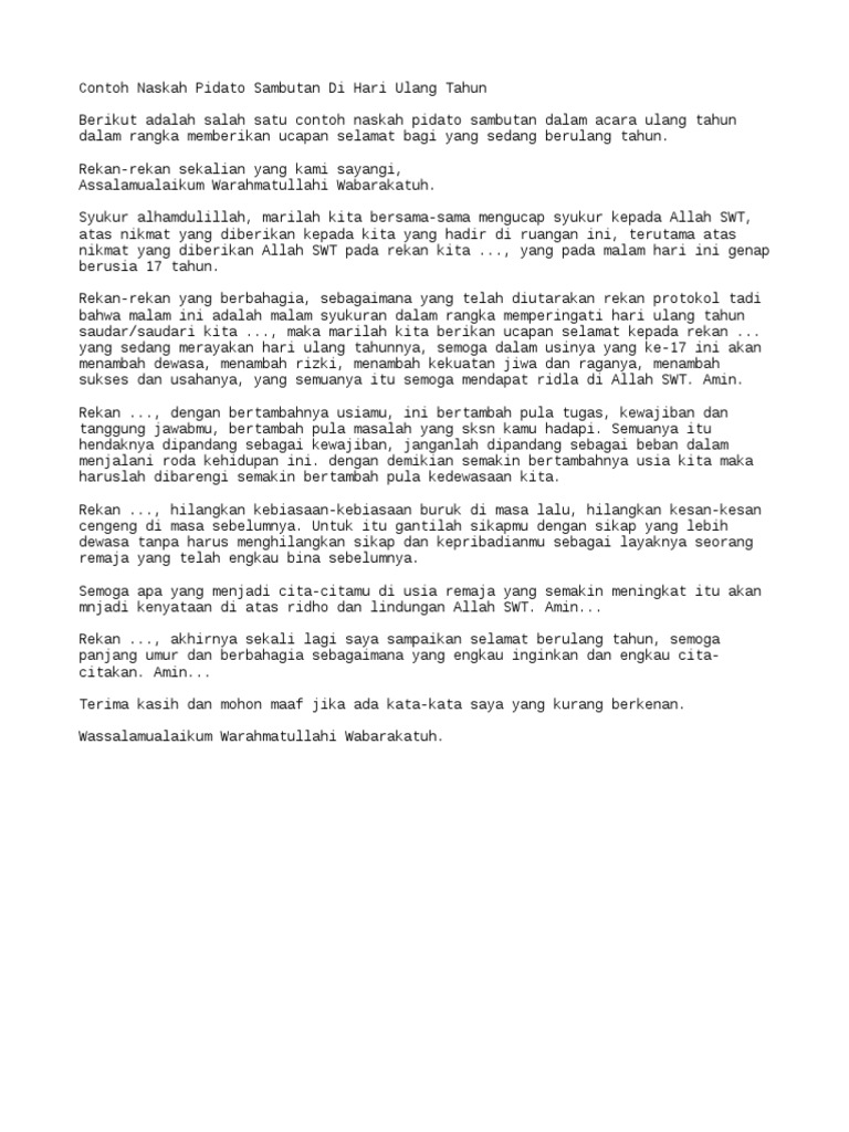 DOC) Contoh kata sambutan tuan rumah pada acara syukuran | Rahman …