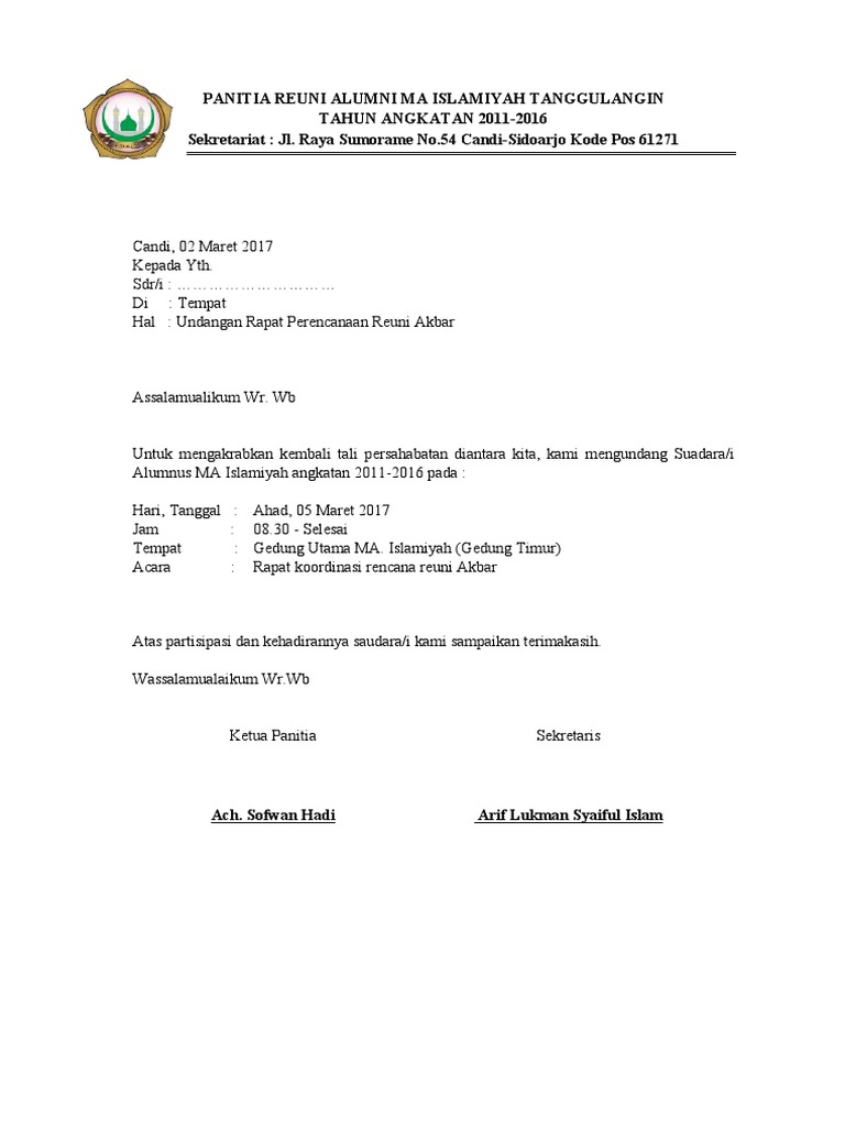Contoh Surat Undangan Reuni Non Formal - Sample Surat Undangan