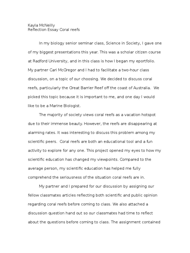 Coral Reef Reflection Essay - Prompt 1 2 3 | Course Hero