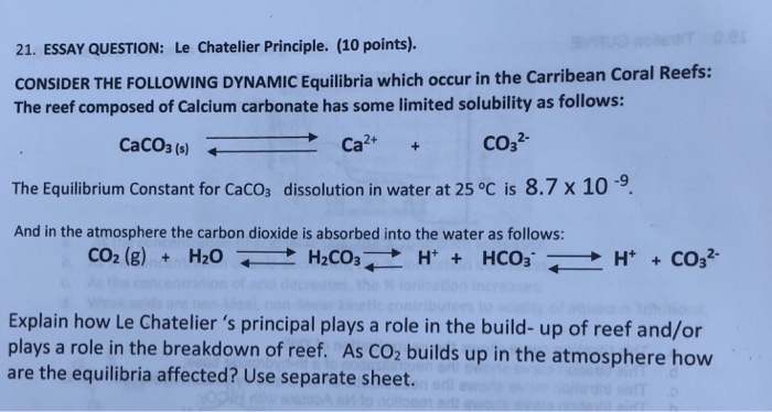 Solved: 21. ESSAY QUESTION: Le Chatelier Principle. (10 Po …