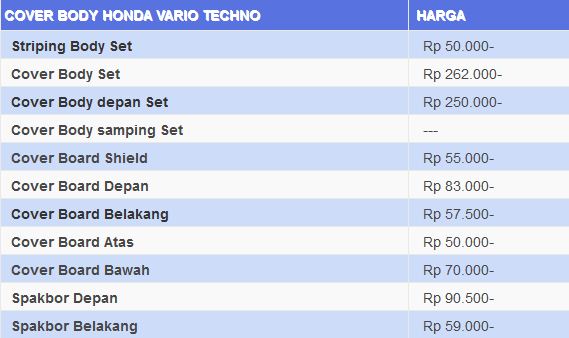 Daftar Harga Cover Body Honda Vario Techno Fullset Depan Belakang Terbaru - Seputar Satria