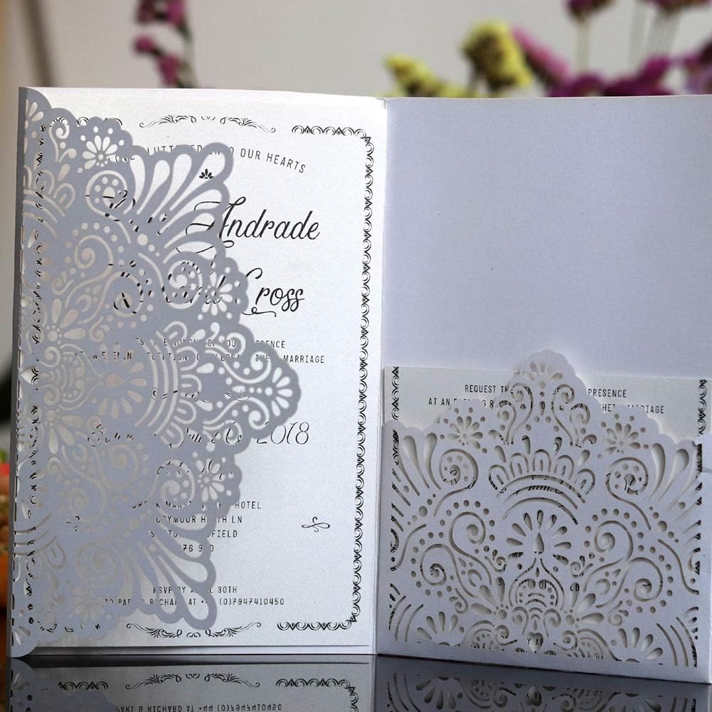 50/100PCS Tri fold Hollow Laser Cut Pocket Wedding Invite …