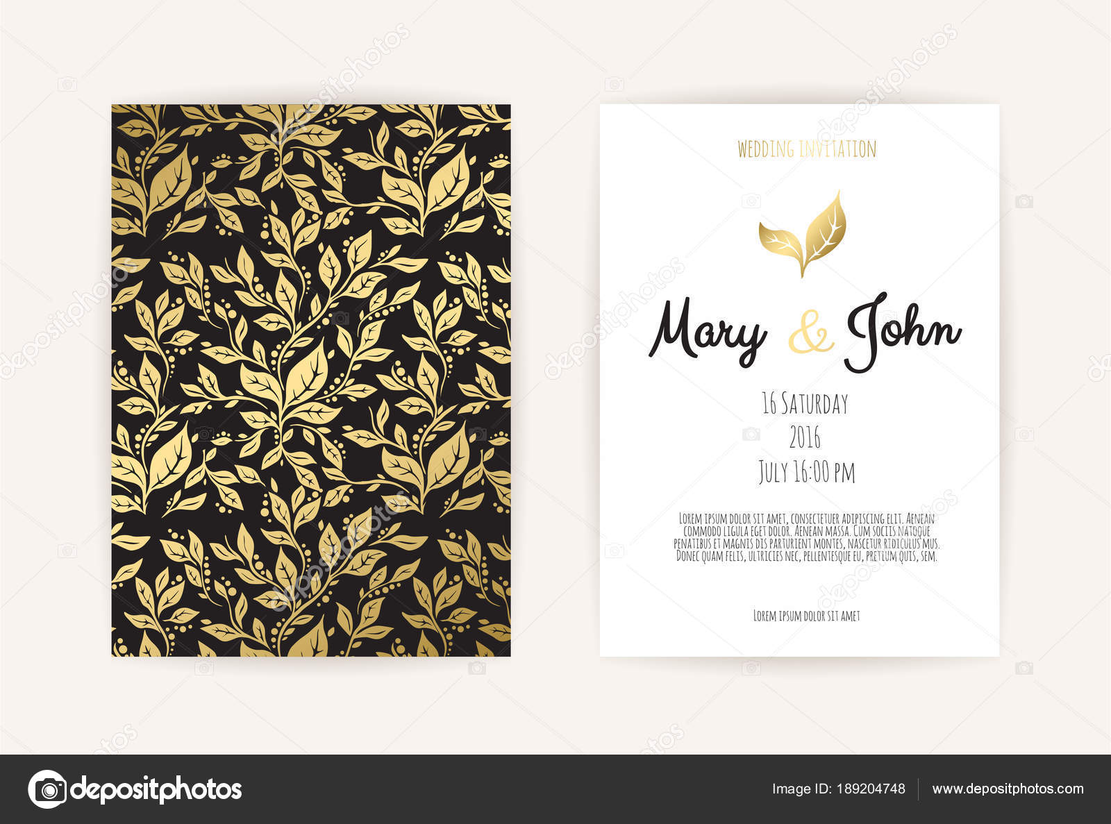 Vintage Wedding Invitation Templates. Cover Design With Gold …