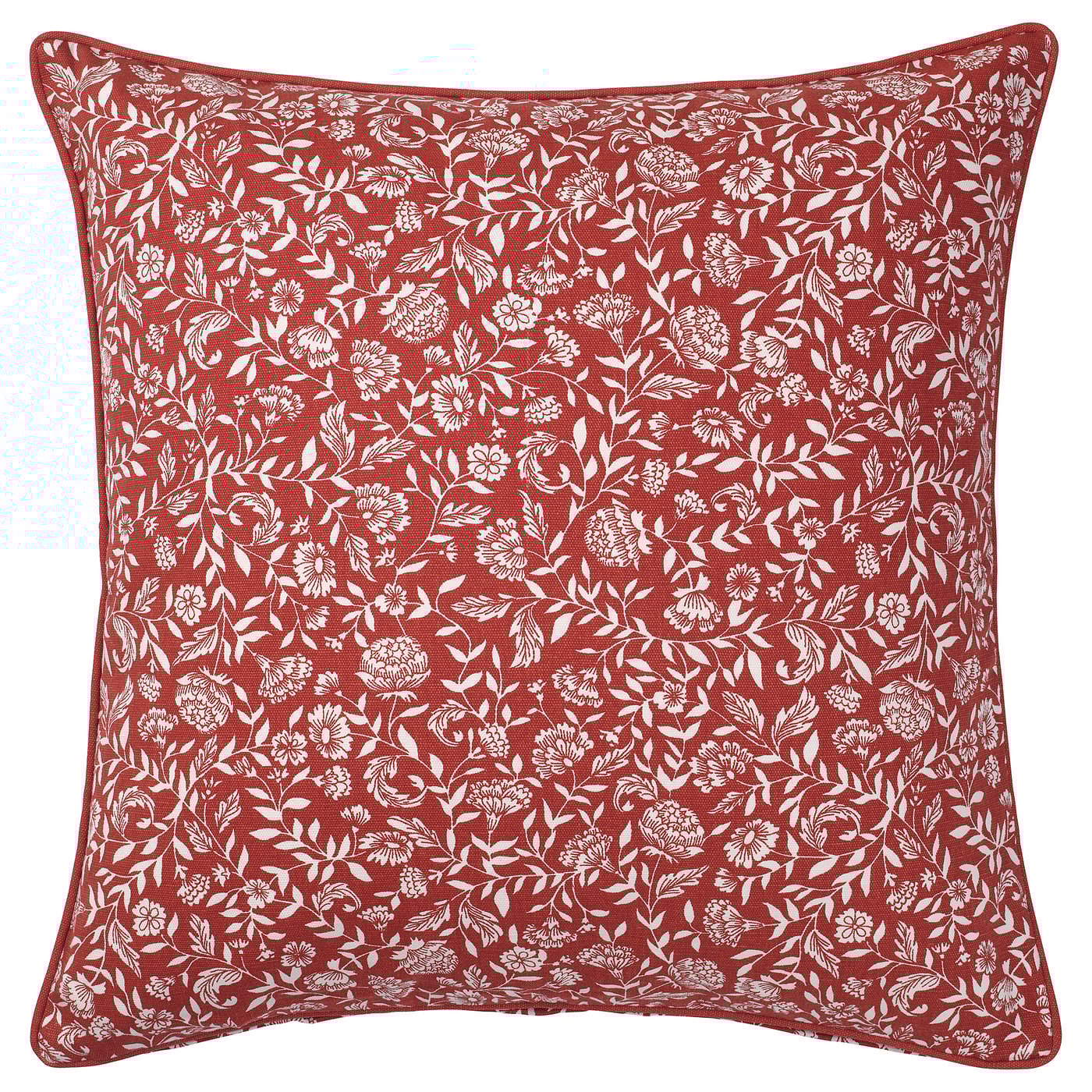 Indian Flowers Silk Jacquard Cushion Cover 18" - Red