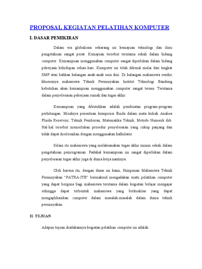 Proposal Kegiatan Pelatihan Komputer: I. Dasar Pemikiran