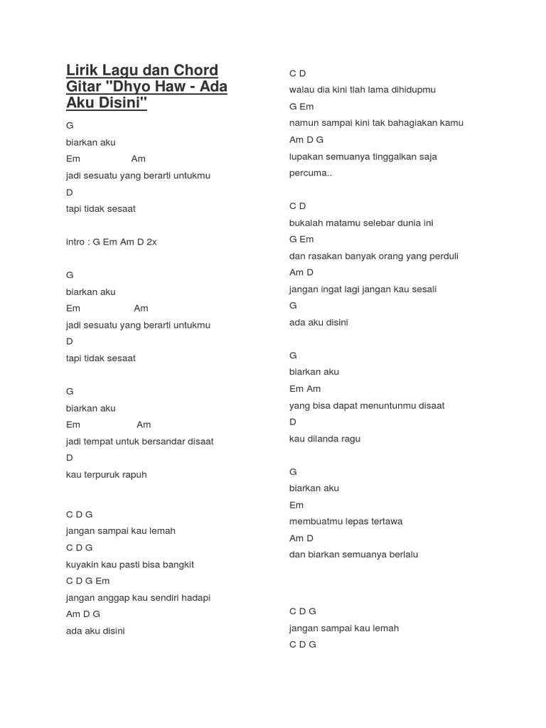 Ada Aku Disini Dhyo Haw Chord