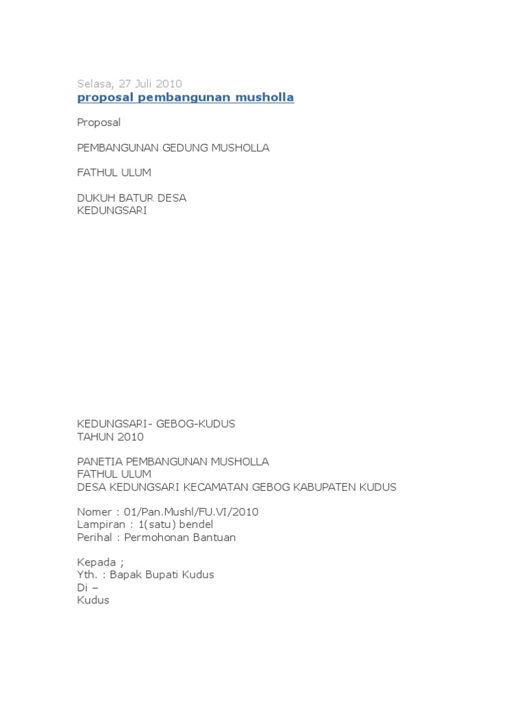 deriaprianto74: Contoh Proposal Pembangunan Mushola