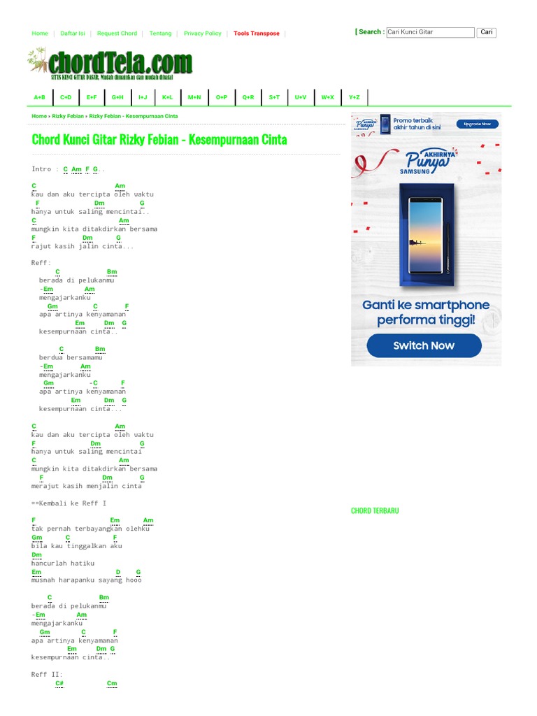 Kunci Gitar Rizky Febian - Kesempurnaan Cinta Chord Dasar Kunci Gitar & Lirik Lagu ©ChordTela.com