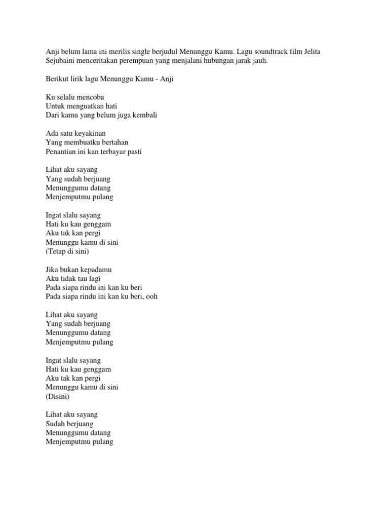 Download Lagu Menunggu Kamu Cipt Anji Voc Chintya Gabriella Lirik Lagu Cover MP3 & Video MP4 - Clip2mp3