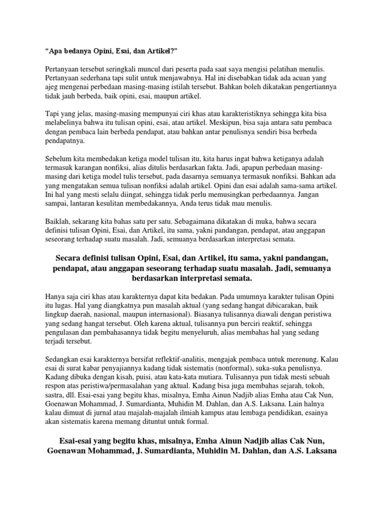 Apa bedanya Opini, Esai, dan Artikel?”