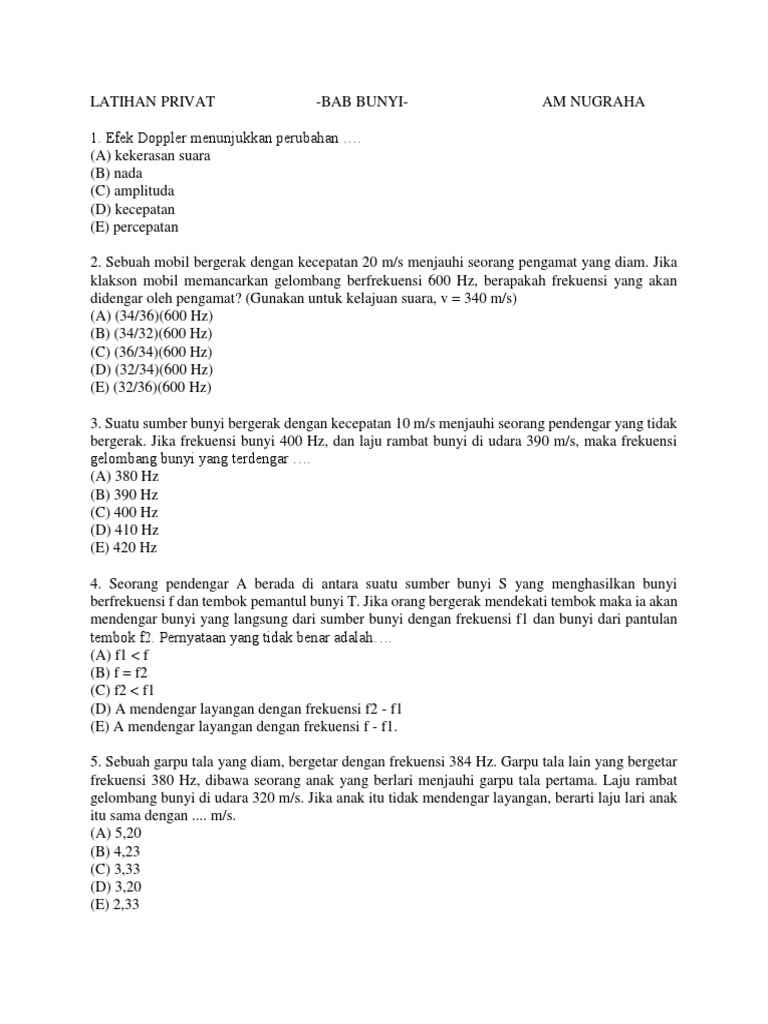 Antiremed Kelas 12 Fisika - .m/s menjauhi seorang pengamat yang diam. Jika klakson mobil memancarkan - [PDF Document]