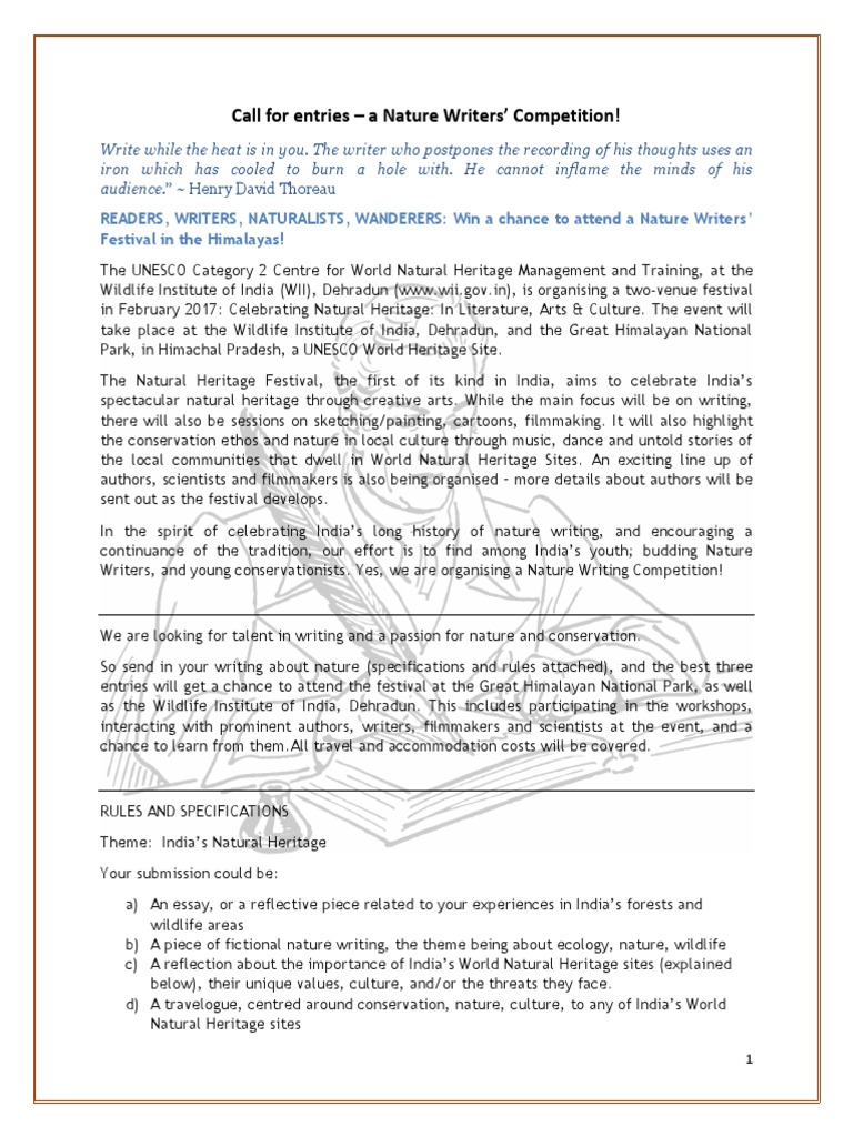 Unesco Nature Writers Competition 2016(1) | Cultural Heritage …