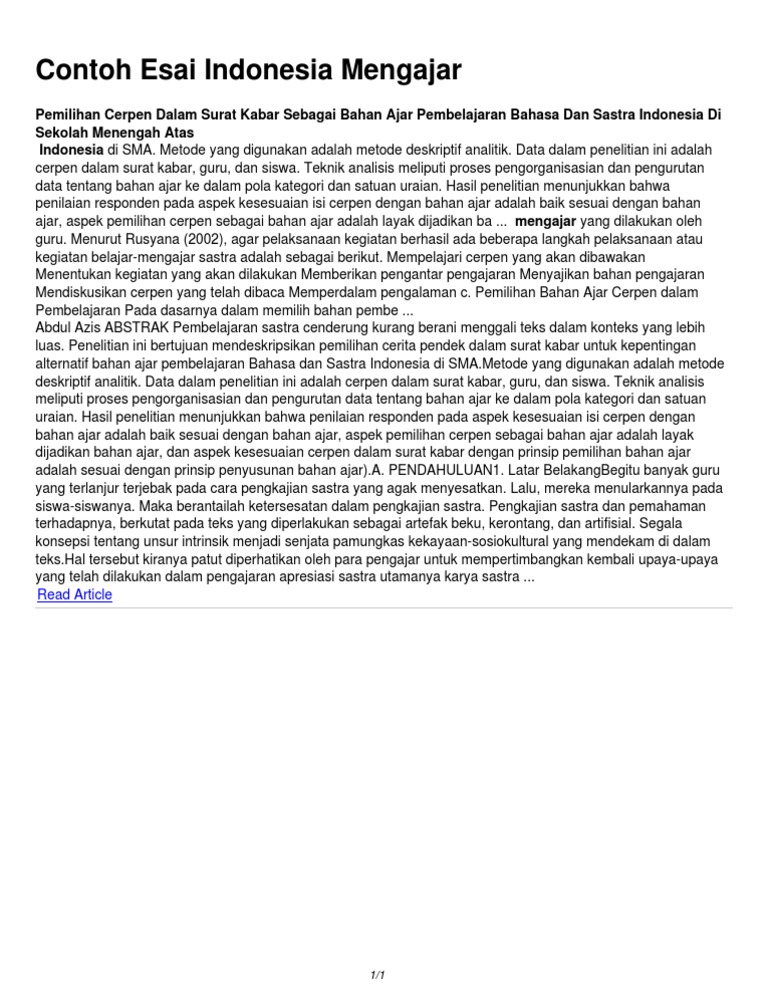 Kumpulan Essay Indonesia Mengajar - l Carta De